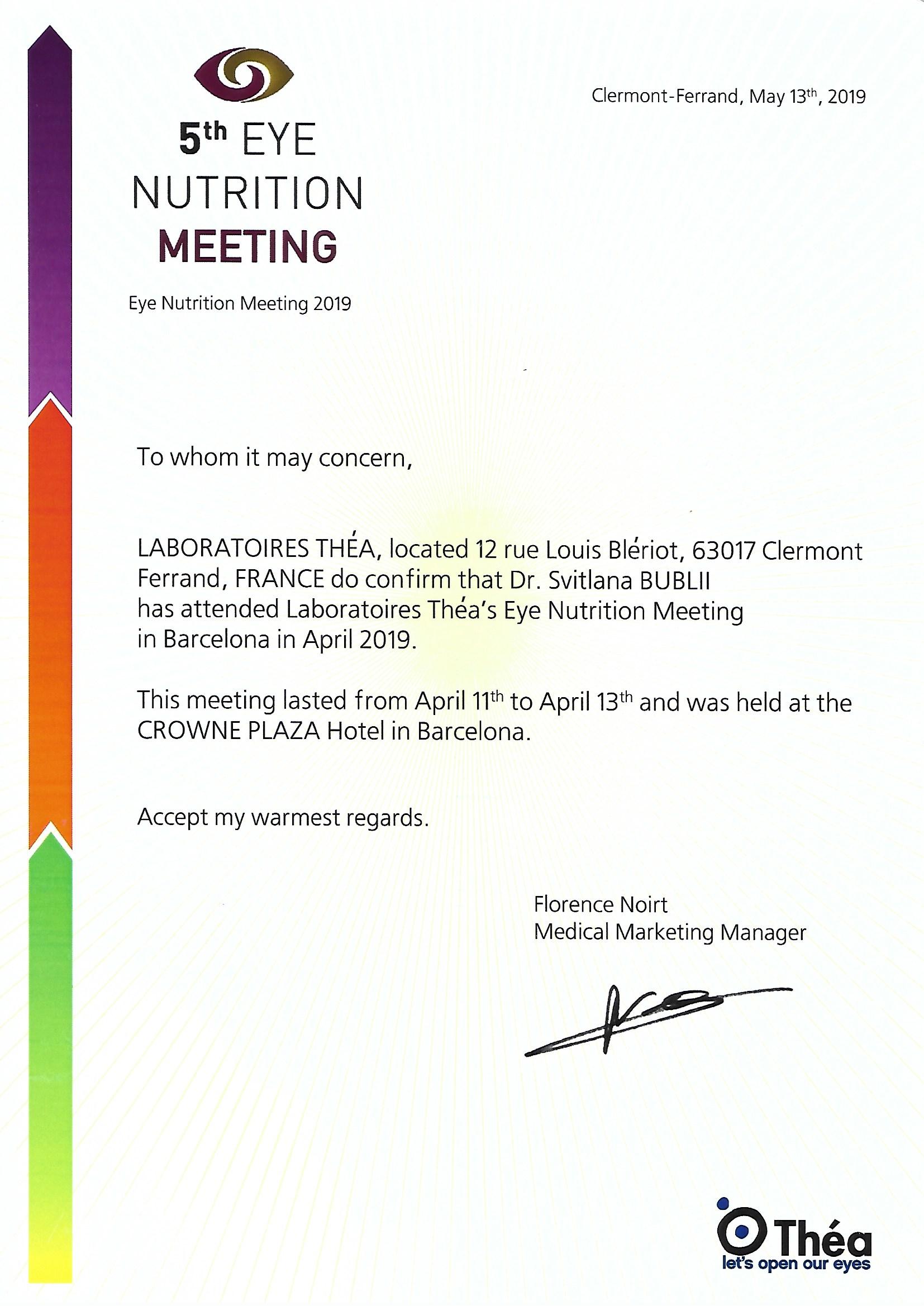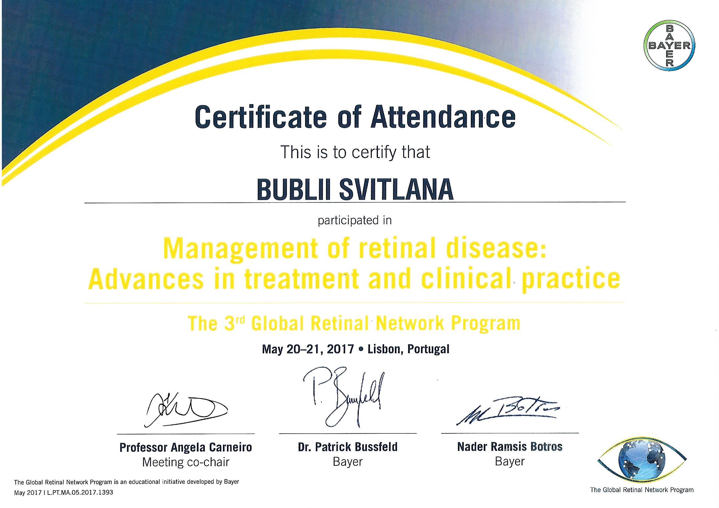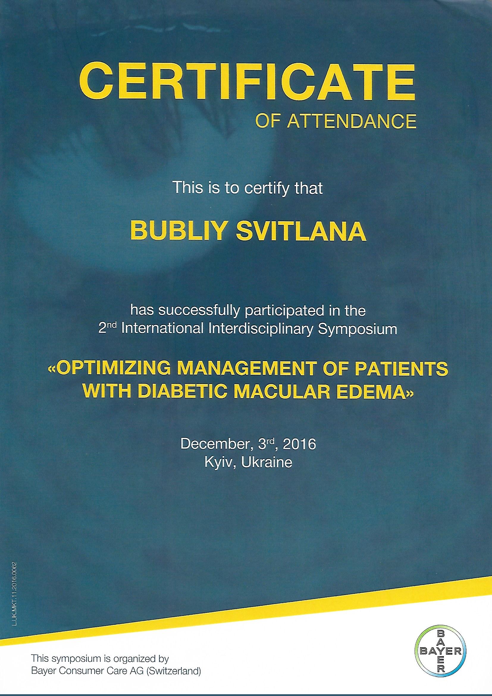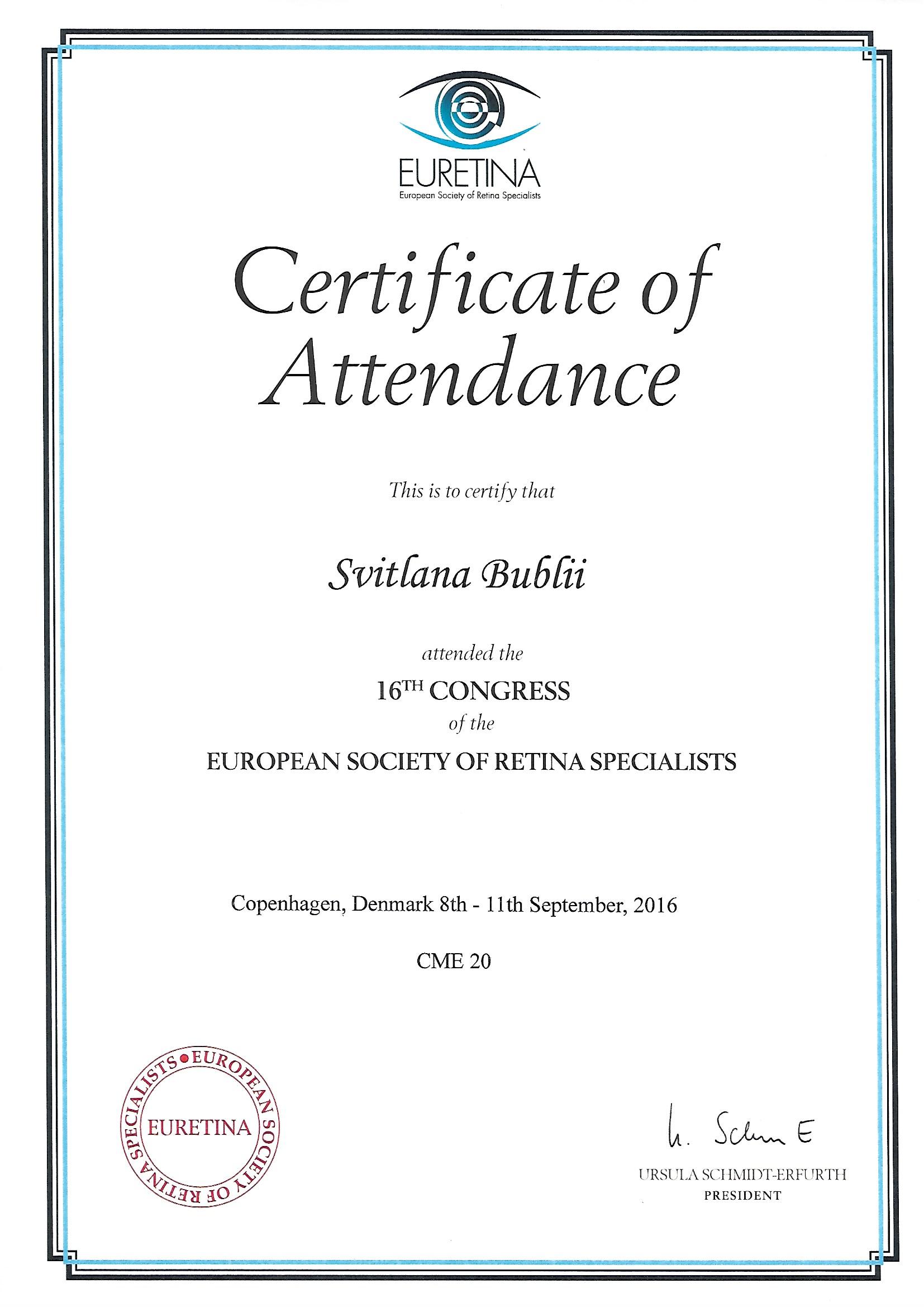 2003-2005 рр. – Інтернатура за спеціальністю Офтальмологія у Національній медичній академії післядипломної освіти імені П. Л. Шупика, Київ та Черкаської обласної лікарні;
