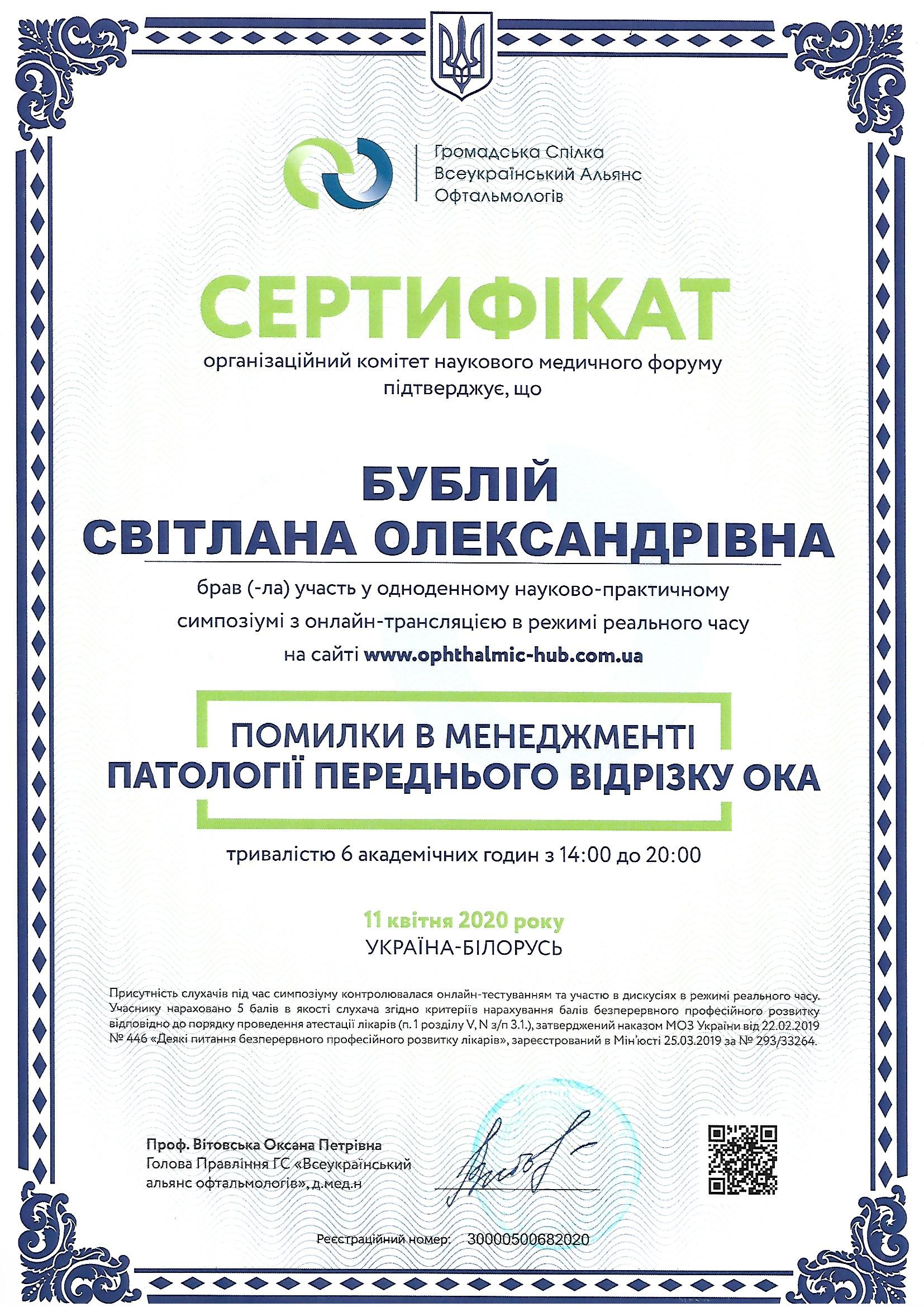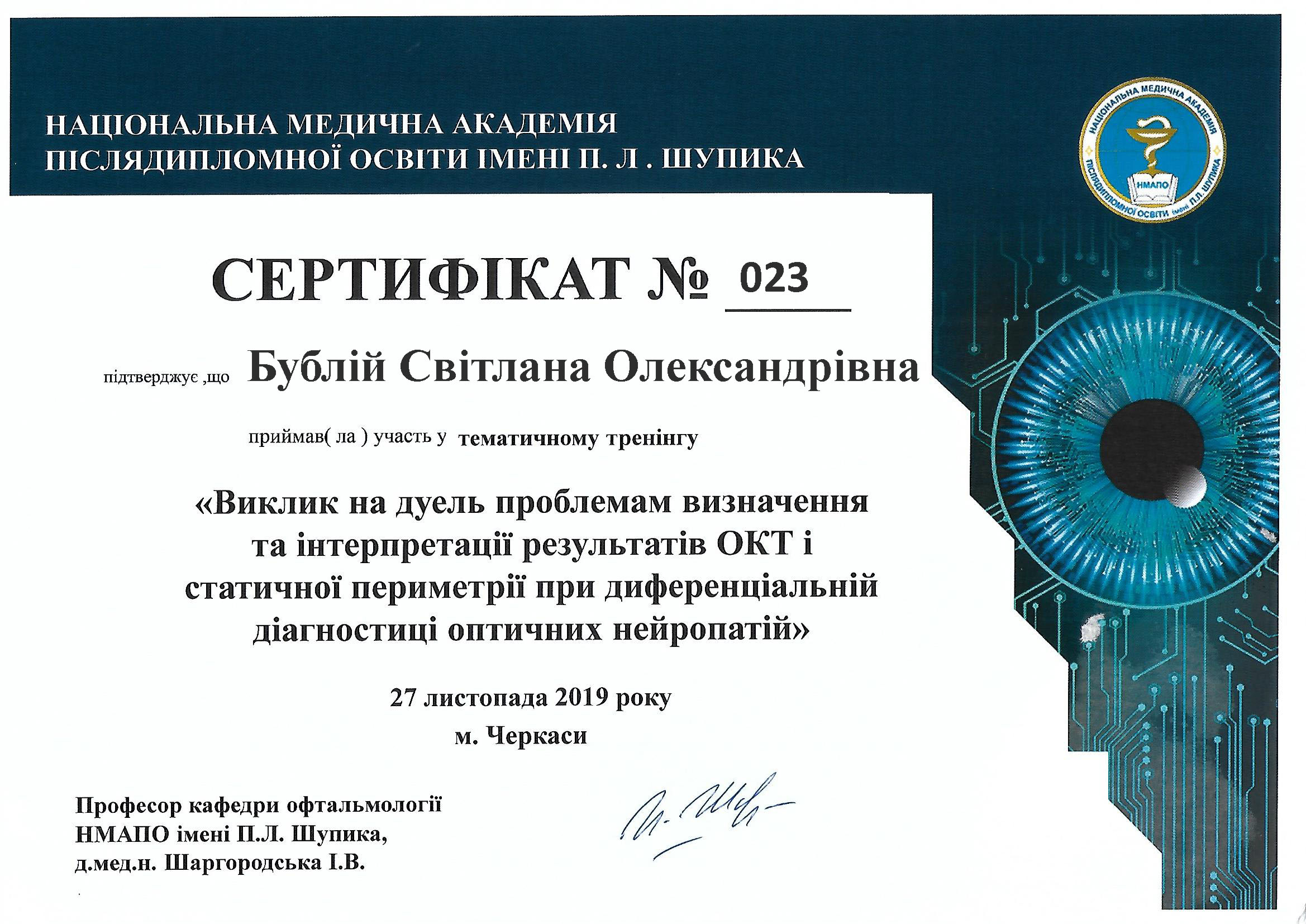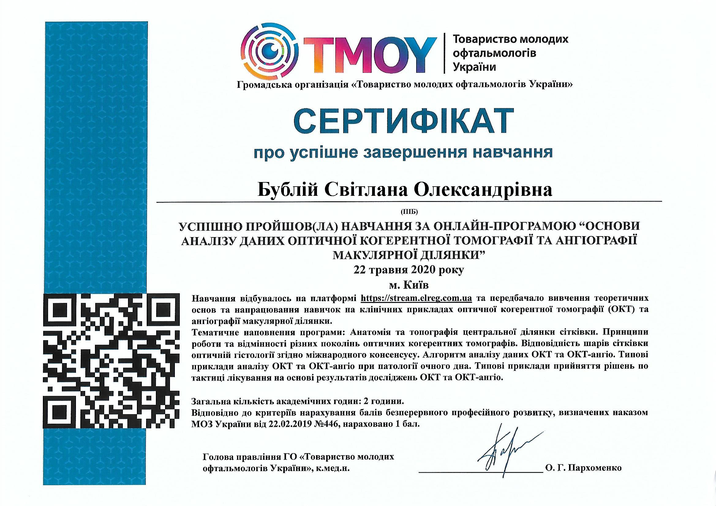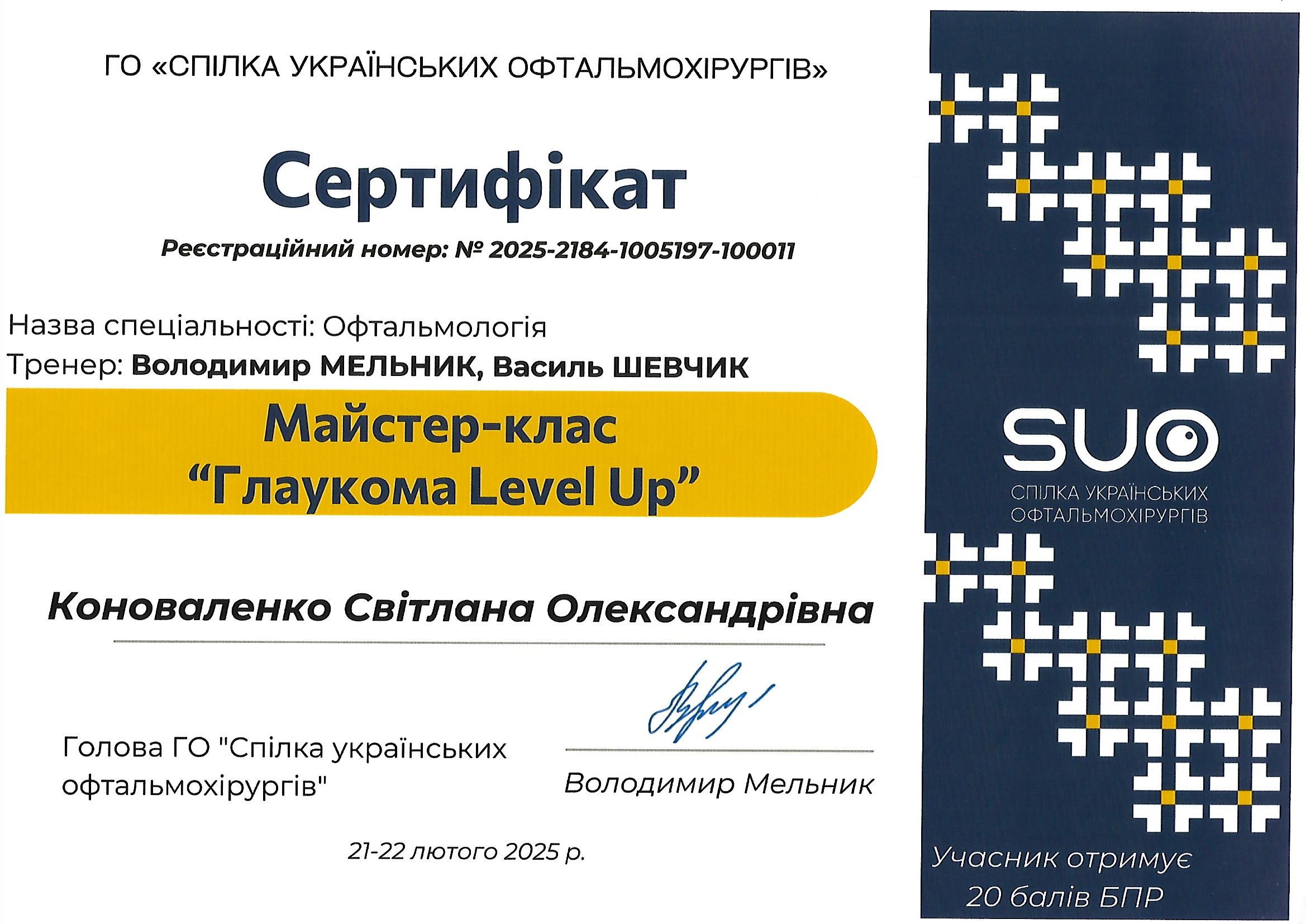 2025-… – лікар-офтальмолог Черкаського центру зору.