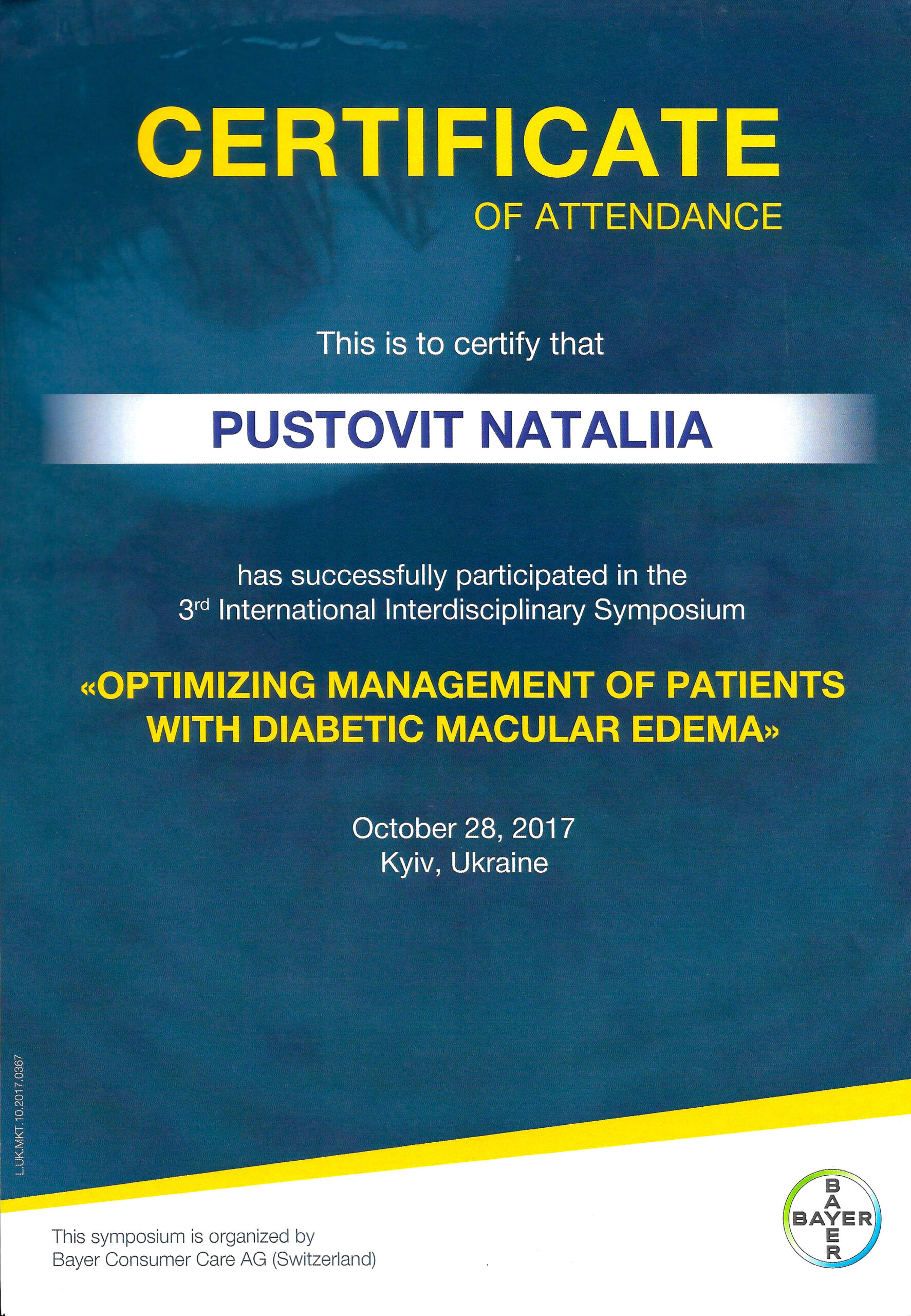 Я будую свою щоденну роботу на принципі турботи про здоров’я пацієнтів та їх комфорту в процесі лікування. Моїм головним пріоритетом є забезпечення найвищої якості лікування зору, що базується на багаторічному досвіді, хірургічній майстерності та глибокій повазі до кожного пацієнта. Я підходжу до кожного випадку з впевненістю і щирим бажанням допомогти.