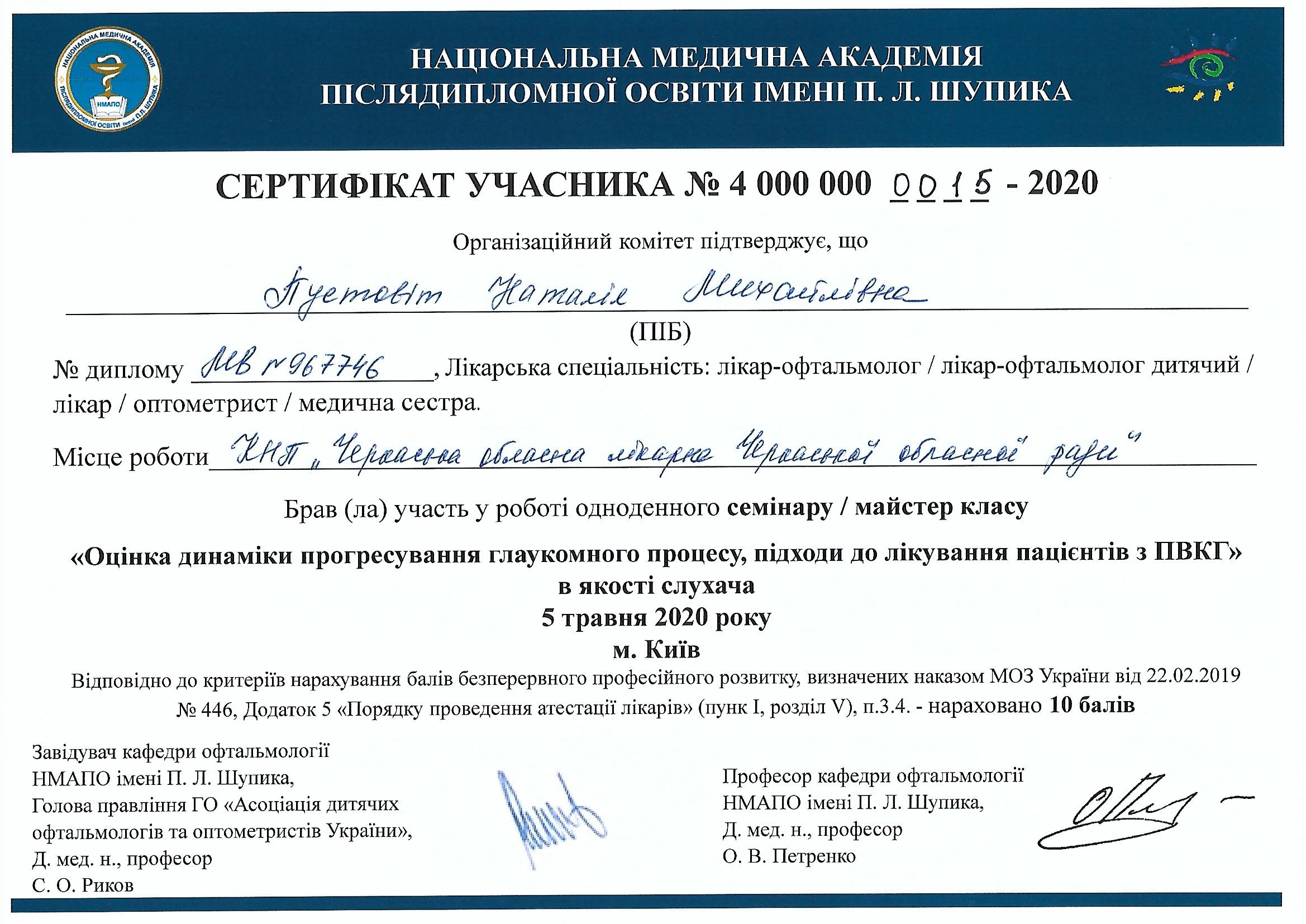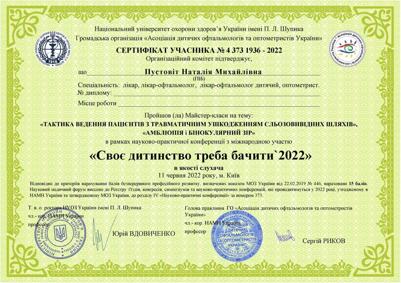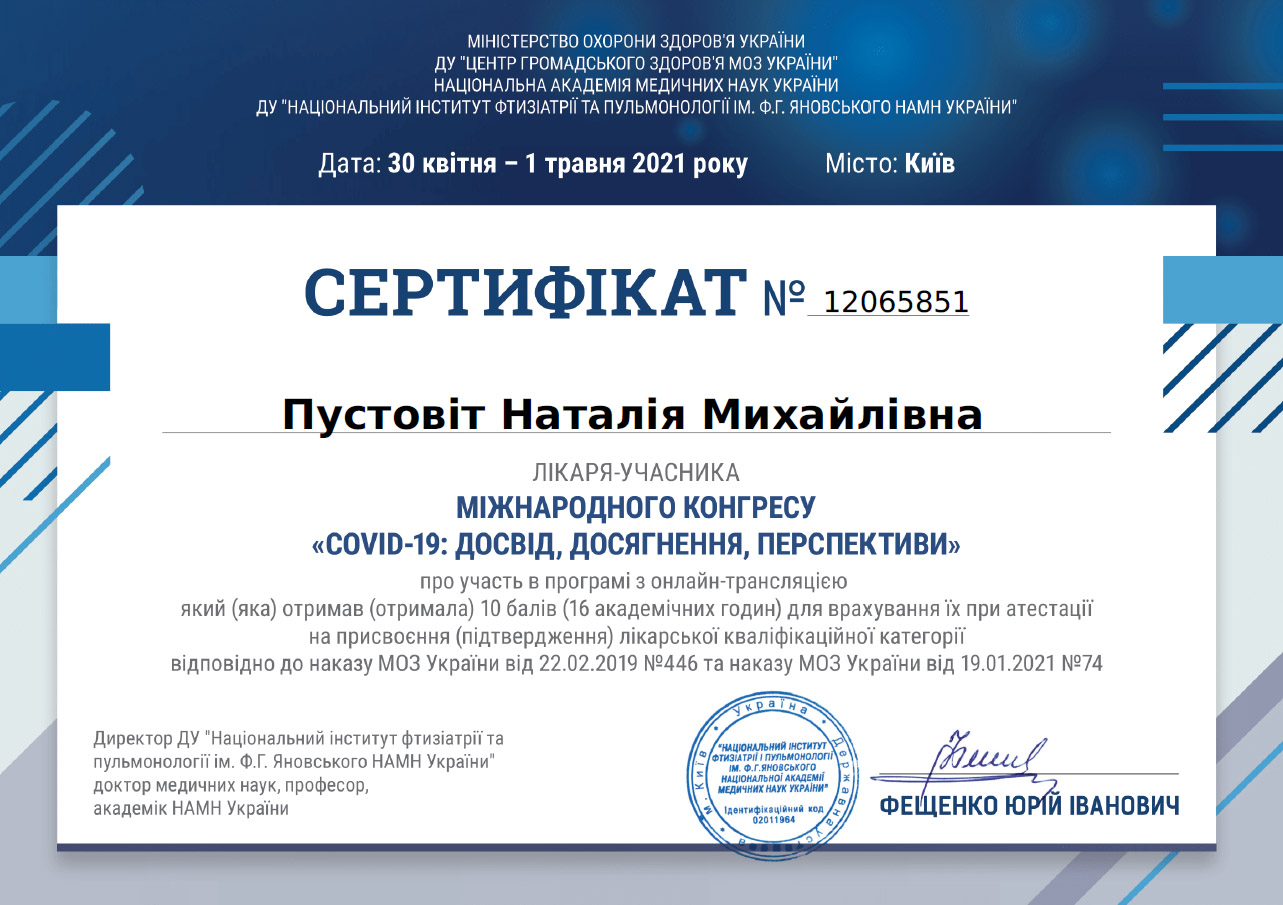 - Лікар вищої кваліфікаційної категорії;